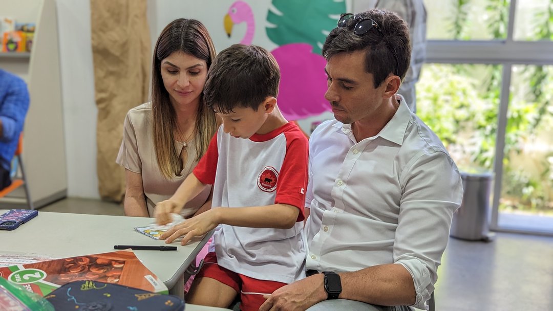 Já para as turmas do Y2 ao Y5, os pais são convidados a participar de momentos específicos, como uma parte da rotina da aula de matemática ou português. Essa é uma oportunidade para que eles fiquem por dentro do que acontece em sala de aula e possam conhecer as estratégias utilizadas pelos professores para ensinar os conteúdos das diversas disciplinas. No nosso último Open House, que aconteceu no mês de março, aos professores trabalharam o processo de ensino-aprendizagem da matemática ,durante a visita em sala de aula, os pais puderam conhecer as três fases do ensino dessa matéria: concreto, pictorial (visual) e abstrato. Cada fase é trabalhada de uma maneira específica, utilizando manipulativos, cores e outros recursos visuais para potencializar a aprendizagem dos alunos.